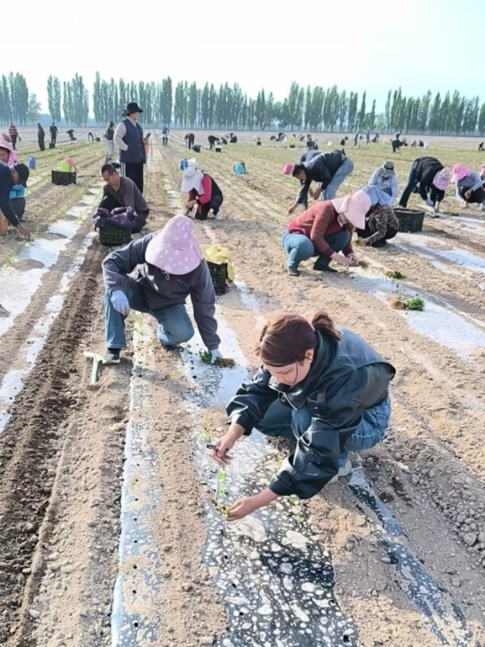 靠谱的口碑让越来越多人主动找她找活干。3月中旬,卡米拉从朋友处得知巩留县东买里镇等乡镇有1万亩甜叶菊栽种需求,急需大量务工人员。“这可是大订单!能让好多人稳定挣钱。”她立刻驱车前往巩留县,实地查看地块条件、核算务工成本,与承接公司反复协商后,敲定了“按工作量计薪”的方案:栽苗速度快、质量好的村民日薪可达380元,普通劳力日薪不低于120元,统一接送。