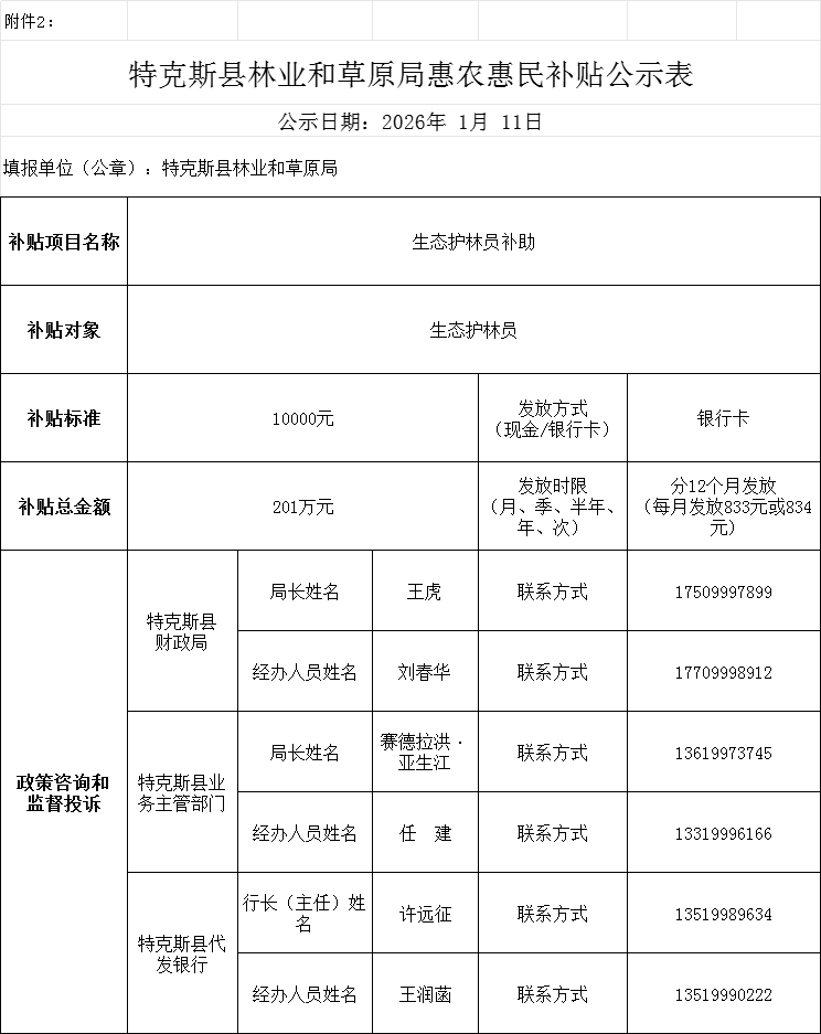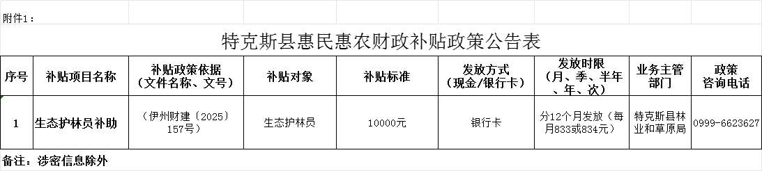 特克斯县2025年耕地力保护补贴资金兑付汇总表
