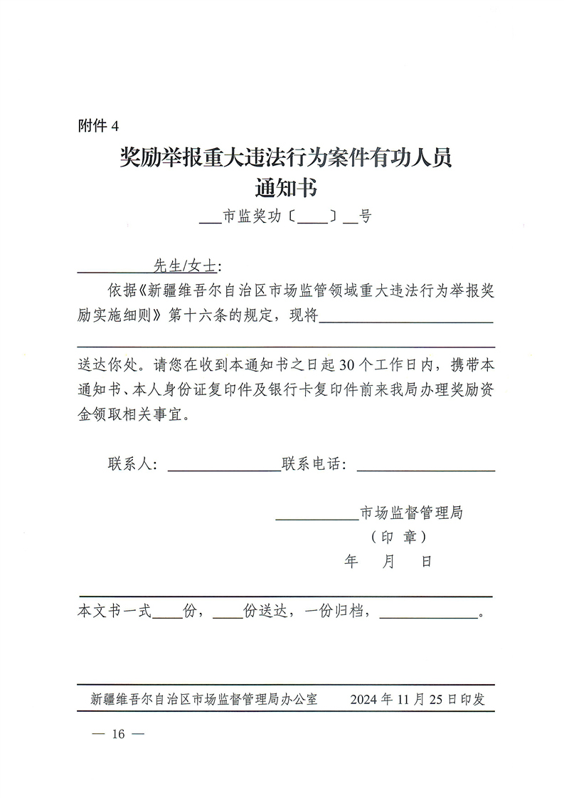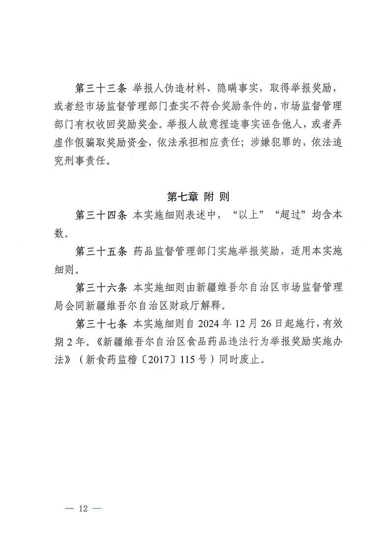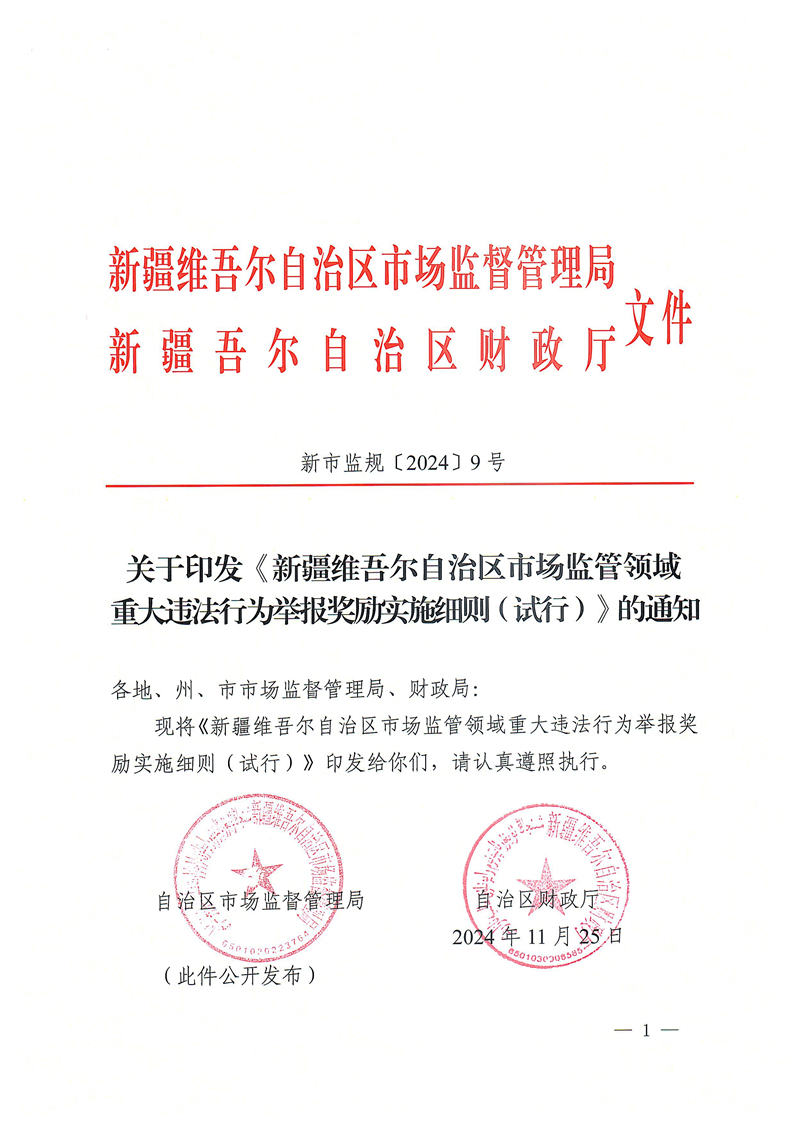 【投诉举报奖励政策】《新疆维吾尔自治区市场监管领域重大违法行为举报奖励实施细则》