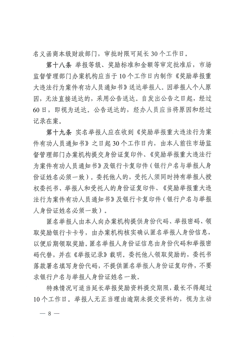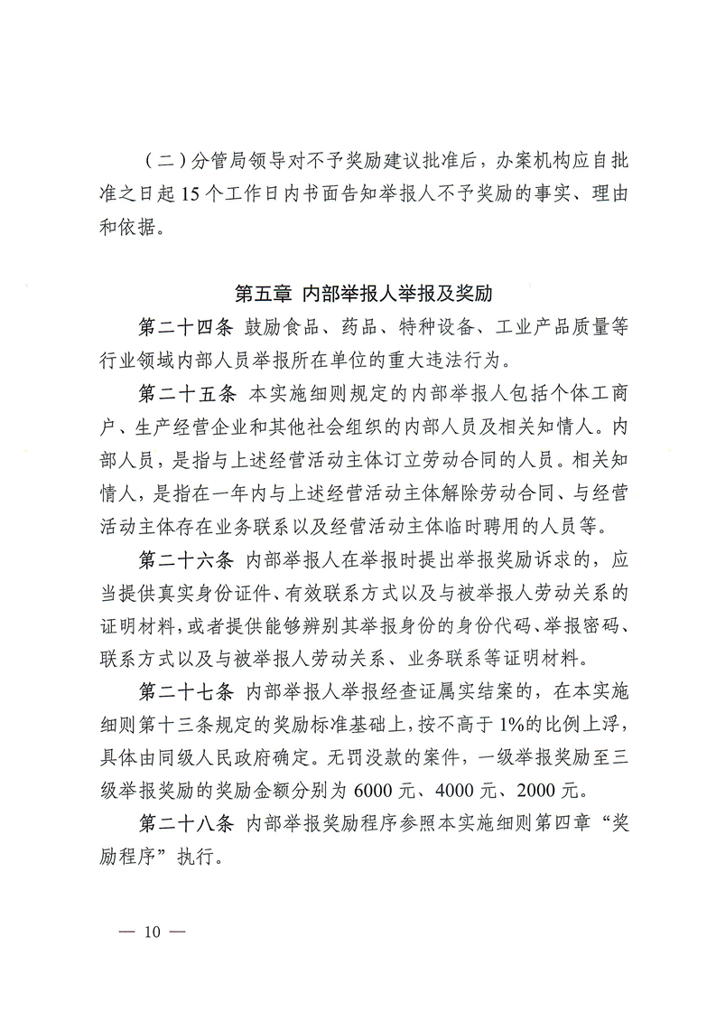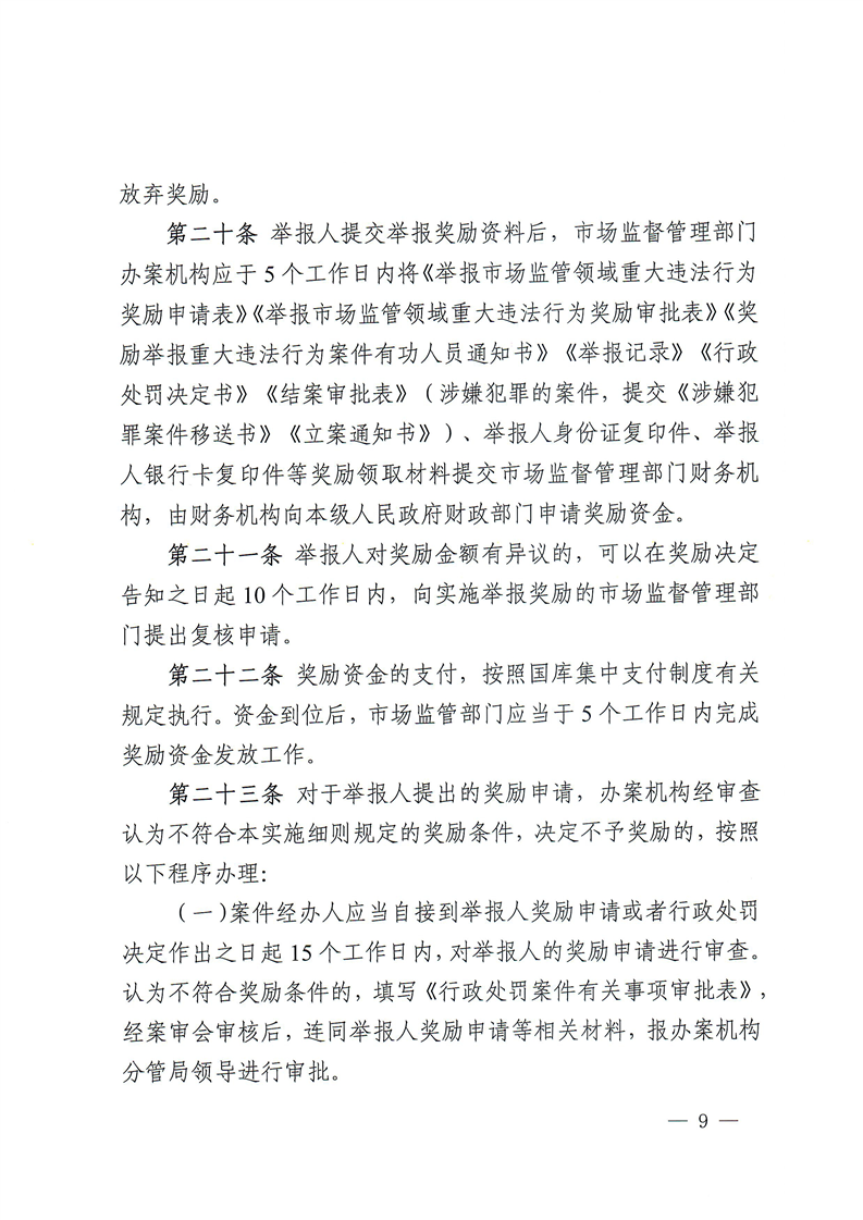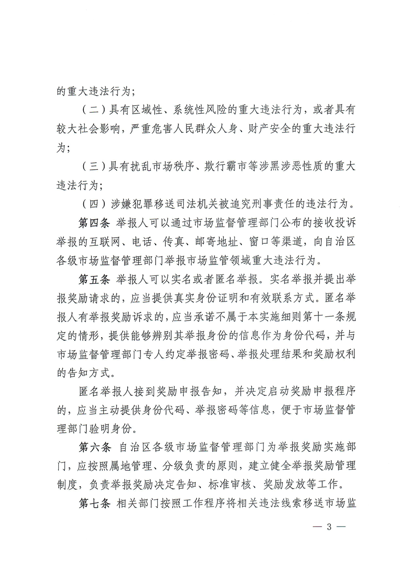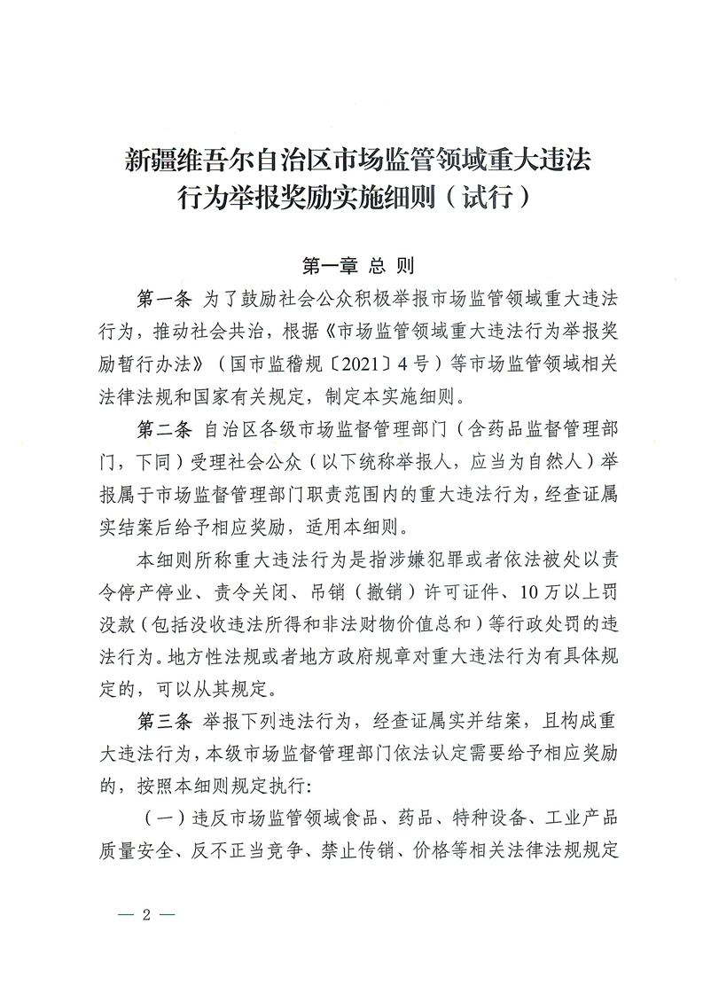 新疆维吾尔自治区市场监管领域重大违法行为举报奖励实施细则