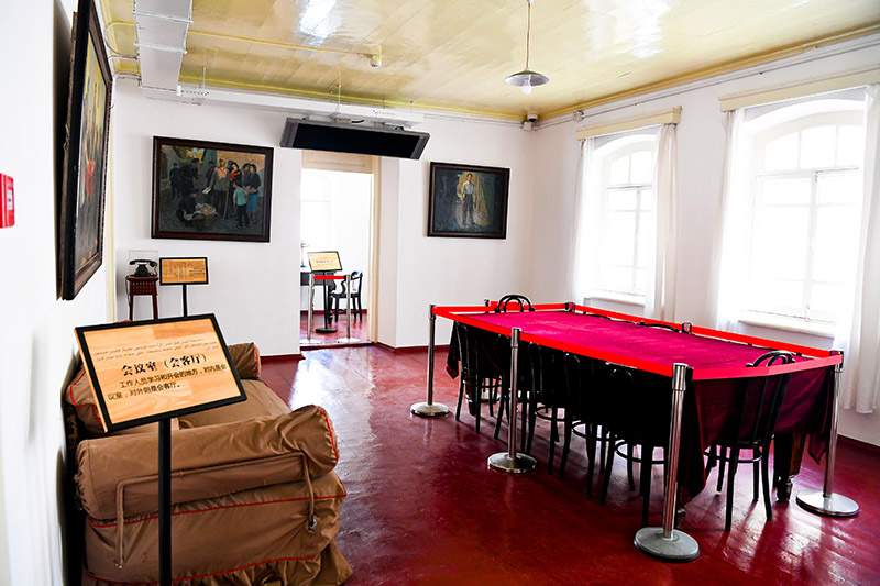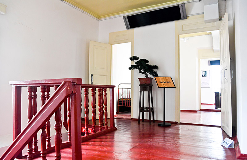 由红色的木质楼梯上到纪念馆二楼,最靠西南侧的房间曾是党代表陈潭秋的办公室。推开门,阳光洒满了整个房间,桌子、台灯、电话、衣架……简朴的陈设一如往日。