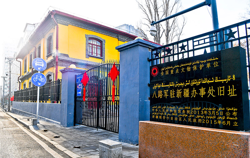 八路军驻新疆办事处纪念馆1937—1942年是中国共产党在新疆领导抗战的办事机构所在地。纪念馆建筑面积503.6平方米,占地1100平方米。共有12间房,楼下5间、楼上7间。一楼二楼分别设了文物展厅,拥有馆藏文物4000件,其中16件被列为国家一级文物。1962年,办事处旧址被乌鲁木齐市政府列为自治区级文物保护单位,命名为“革命烈士纪念馆”,1965年10月更名为“八路军驻新疆办事处纪念馆”。目前,该旧址是全国重点文物保护单位和全国爱国主义教育示范基地。2004年12月,八路军驻新疆办事处纪念馆被中宣部、国家发展改革委等九部委列为“全国百家红色旅游经典景区(点)重点建设规划”之一。八路军驻新疆办事处纪念馆新馆预计今年5月开馆。