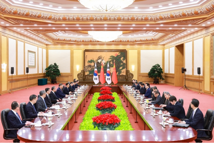 1月5日下午,国家主席习近平在北京人民大会堂同来华进行国事访问的韩国总统李在明举行会谈。新华社记者 刘彬 摄