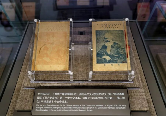 中共一大纪念馆展出的由陈望道翻译的《共产党宣言》第一个中文全译本(2021年6月1日摄)。新华社记者 刘颖 摄