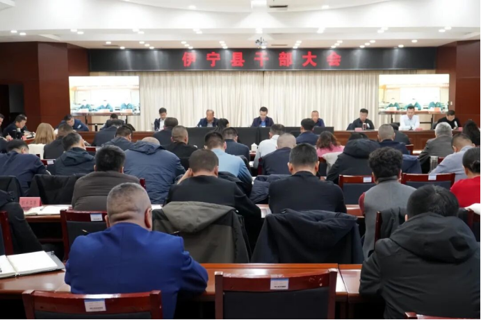 伊宁县召开干部大会,传达学习习近平总书记在中央政治局民主生活会上的重要讲话精神及中央、自治区、自治州有关会议、文件精神,通报违反中央八项规定精神典型问题、道路交通领域风险隐患排查督导情况,并对安全生产、群众工作等进行安排部署。(伊宁县委组织部 盛会)