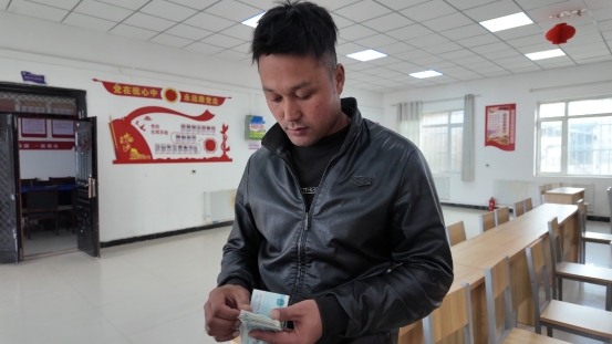 △萨尔阔布村土地流转租金发放现场村民仔细清点土地流转金  赛丽曼摄