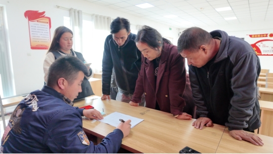 △萨尔阔布村土地流转租金发放现场工作人员正在核对信息  赛丽曼摄