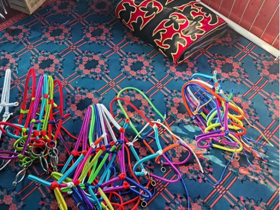 夕阳西下,努尔波力家的灯光依旧明亮。彩绳在一双双手中不断延伸,编织出的不仅是精美的马具,更是非遗传承的脉络、乡村振兴的希望。“下一步,我想开发更多文创产品,比如带有马具元素的挂件、装饰品,让更多人了解马具文化,同时带动更多乡亲就业增收。”努尔波力满怀期待地说。