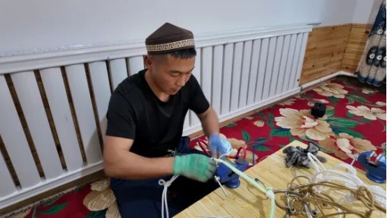 日子红火起来后,努尔波力萌生了带动乡邻共同致富的想法。“非物质文化遗产不是私藏的宝贝,大家一起做才能传得更久、走得更远。”他主动邀请村里5位家庭困难的邻居加入,从选绳技巧到纹样设计倾囊相授。如今,这5位邻居均已成为熟练工,日均能独立完成数件马具,人均日增收150元。“跟着努尔波力大哥学手艺,不用外出打工,在家门口就能挣钱,还能照顾老人孩子。”村民加再拉・努尔兰一边编织一边笑着说,曾经只拿过碗筷的双手,如今能织出精美的马具,让她充满成就感。