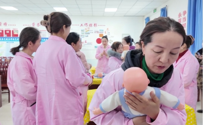 “通过培训掌握了新生儿包裹、抱姿、拍嗝等实用技能,拿到证书后能更顺利地找到工作,为家庭增加收入。”村民袁金梅说。