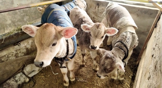 特克斯县乔拉克铁热克镇坎土曼托别村村民叶尔哈力·得依汗拜说:“我的牛生下了三胞胎,心里特别高兴,这是之前想都不敢想的事。”