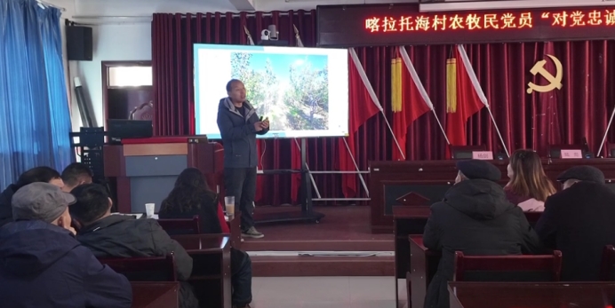 培训期间,榜样引领与技能赋能并行。1月12日的榜样引领课上,全体党员集中学习全国最美乡村医生、优秀共产党员居马泰·俄百克的先进事迹,感悟其扎根基层、主动担当的实干精神,唤醒党员主动作为意识;1月13日的技能赋能课上,林草局专业技术人员围绕特克斯县林果园发展趋势及林果栽培技术授课,从果树科学修剪到精细化管护,内容直击种植痛点,让党员们专注聆听、认真记录。
