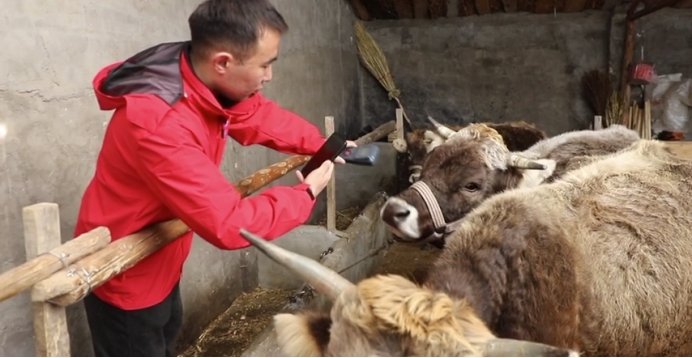“我每年都会为家中奶牛投保,每头仅需自缴120元,若奶牛遭遇意外死亡,可获得1万元理赔。这份保障让他在养殖过程中更有底气,也更加安心。”法·尼木别勒克说: