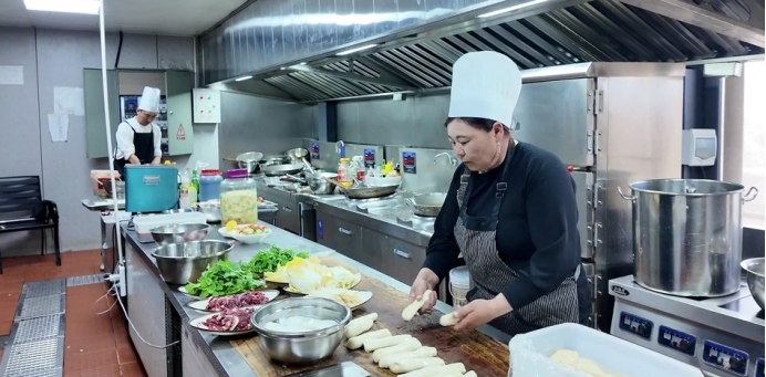 营地的良性发展,离不开与村集体的深度合作,更离不开对本地村民的培育与扶持。在营地的带动下,不少村民掌握了专业技能,实现了稳定就业,吾力图尔·加布合巴依就是其中之一。作为营地的面点师,她凭借一手地道的哈萨克族面点手艺,拥有了稳定的收入来源。