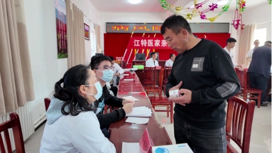 义诊一开始,心内科、妇产科等6个专科咨询台前围满了前来看病问诊的村民。援疆专家们从老人的慢性病史到孩童的生长发育,耐心解答每一个问题。“您这血压有点高,记得少吃盐”“这个药要饭后吃”——通俗易懂的健康医嘱伴随着免费发放的药品,让阿依古丽女士连连竖起大拇指。据统计,仅一上午就完成120余人次诊疗,80余位村民拿到免费药品。“听说南京医疗专家要来,我10点就带着我妈来了。”叶尔肯巴合提扶着78岁的母亲坐在诊疗椅上,老人患胃病多年,去县城医院看病要坐3个小时车,现在专家送医上门问诊,这让他们喜出望外。