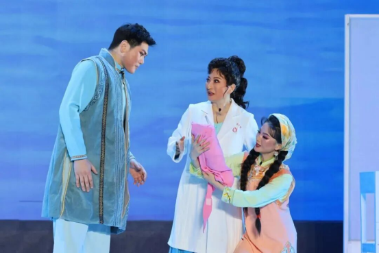 作为该剧的核心人物,由陈澄饰演的援疆医生“苏晓光”,成为全剧最具感染力的情感支点。陈澄以扎实的唱腔功底和极具张力的舞台表达,将人物内心的家国情怀、责任担当与情感抉择层层铺展,既演出了援疆医生的专业坚守,也诠释了普通人在时代召唤下作出的不凡选择。她的表演真挚克制、情感饱满,使角色既立得住、又进得人心,让“小白杨”这一精神符号在舞台上生动鲜活、久久回响。
