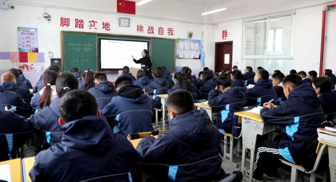 △吴照霞正在特克斯县高级中学高一(8)班授课 侯湘菱摄