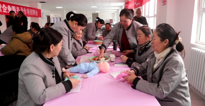 △特克斯镇东城幸福社区家政服务员培训现场 居哈尔毕摄