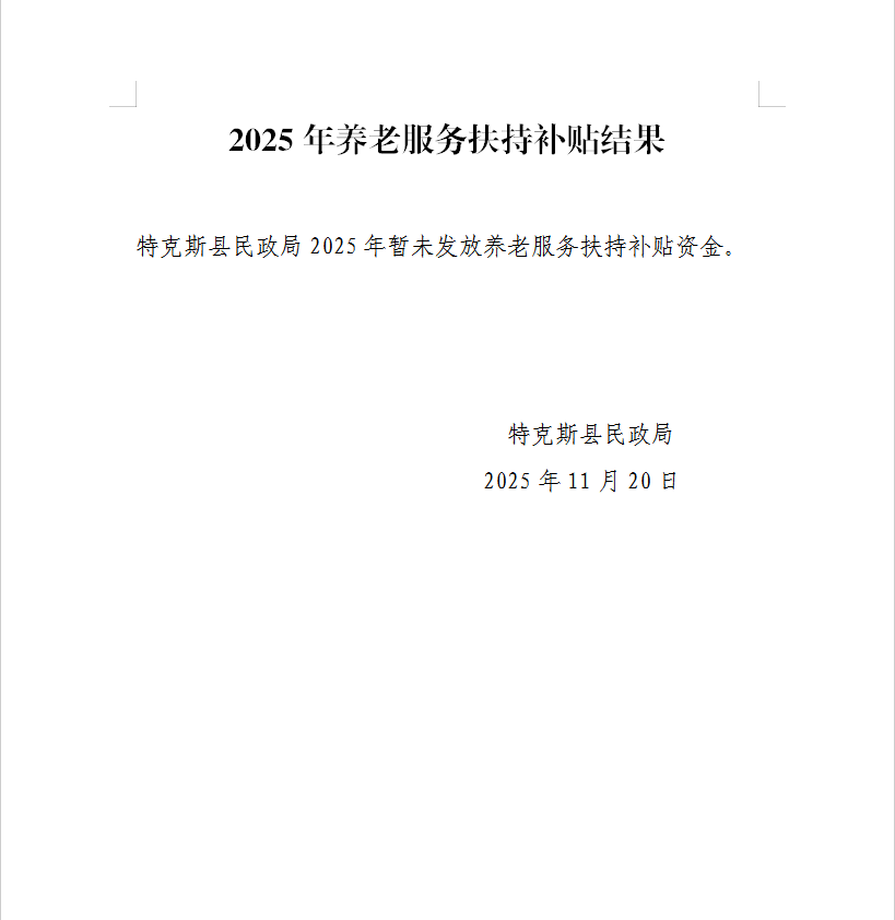 2025年养老服务扶持补贴结果