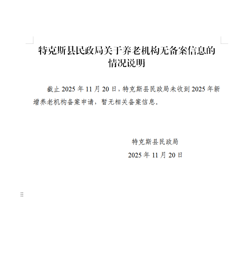 特克斯县民政局关于养老机构无备案信息的情况说明