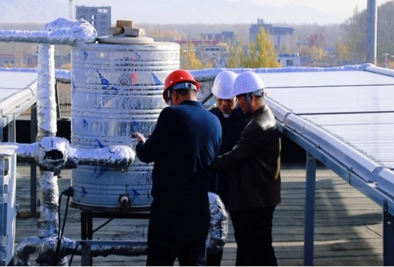 △供暖专家一行实地走访小区考察特克斯县太阳能供暖项目升级改造成效 段悦摄