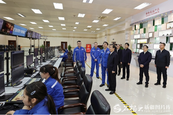 11月19日,自治区党委书记陈小江在中石油克拉玛依石化有限责任公司,详细了解原油炼化加工情况。石榴云/新疆日报记者崔志坚摄