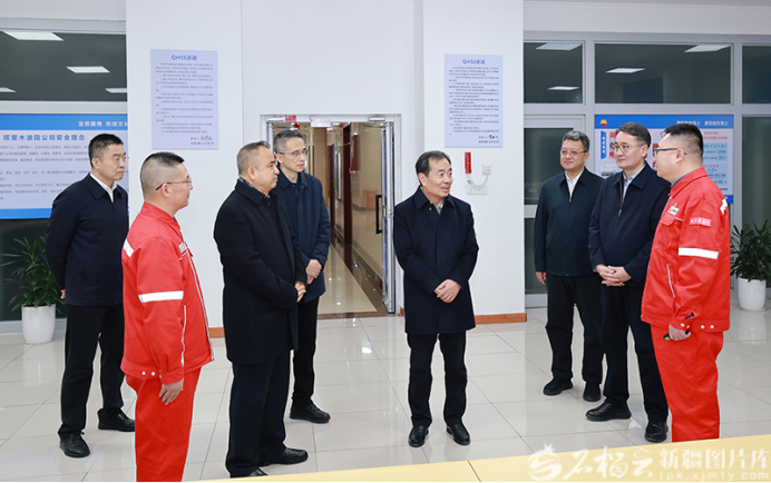 2月13日,自治区党委书记陈小江、自治区主席艾尔肯·吐尼亚孜在塔里木油田喀什油气储运中心,详细了解节日期间能源保障工作。石榴云/新疆日报记者 崔志坚摄