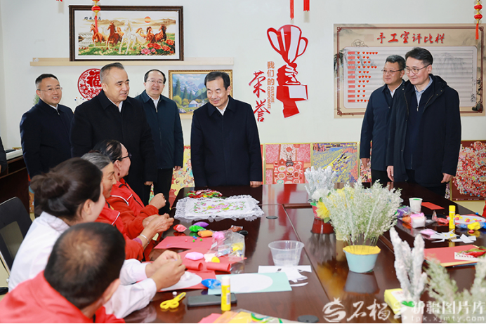 2月14日,自治区党委书记陈小江、自治区主席艾尔肯·吐尼亚孜在阿图什市中心敬老院,为各族老年人送上新春祝福。石榴云/新疆日报记者 崔志坚摄