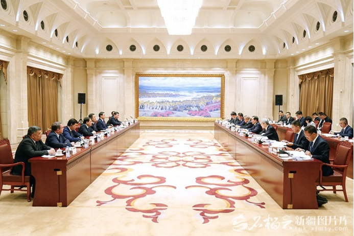 陈小江代表中共新疆维吾尔自治区委员会、自治区人民政府对图尔济莫夫一行表示欢迎。他说,前不久中国全国两会胜利闭幕,会议批准的“十五五”规划纲要为中国未来五年发展擘画蓝图,为变乱交织的世界注入宝贵的确定性和稳定性。中乌是友好近邻和新时代全天候全面战略伙伴,在两国元首战略引领下,中乌合作驶入快车道。中共十八大以来,在习近平主席和中共中央坚强领导下,新疆完整准确全面贯彻新时代中国共产党的治疆方略,社会大局保持持续稳定,中华民族共同体意识深入人心,经济实力实现历史性跃升,基础设施日益完善,特色优势现代化产业体系加快构建,开放的大门越开越大,民生福祉不断增强,步入了发展最好、变化最大、各族群众得实惠最多的历史时期。中国新疆与乌兹别克斯坦地方间务实合作具有坚实基础、互补优势和广阔前景,双方在经贸、农业和医疗卫生等领域合作成果显著。下一步,中国新疆愿同乌方共同努力,发掘合作潜力和资源优势,持续推进农业现代化合作,加强经贸领域合作和专业人才培养交流,为构建更加紧密的中乌命运共同体作出贡献。