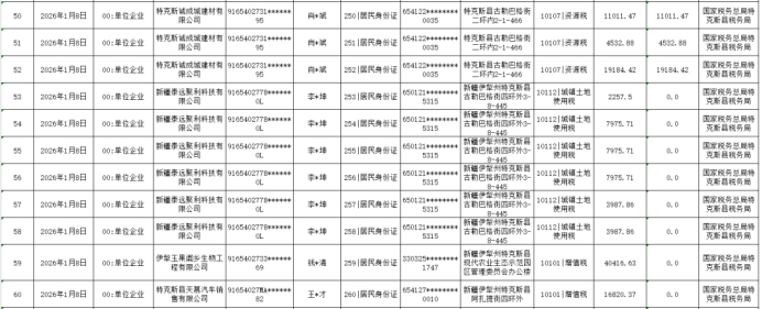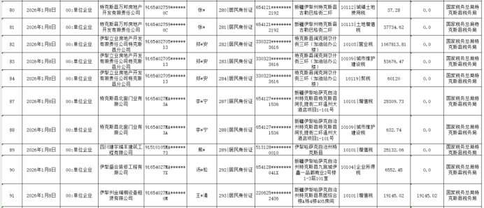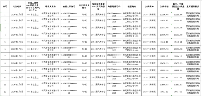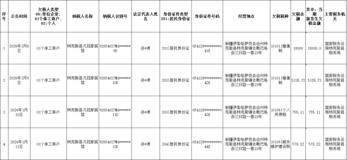国家税务总局特克斯县税务局欠税公告