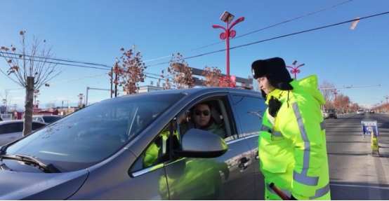 特克斯县公安局交通管理大队县城三中队执勤交警吾木尔江·吾拉森说:“我作为一名交警,能做的就是守护好这条路的安全,让群众出行中感受到温暖,用坚守为这片土地的安宁祥和贡献自己的一份力量。”
