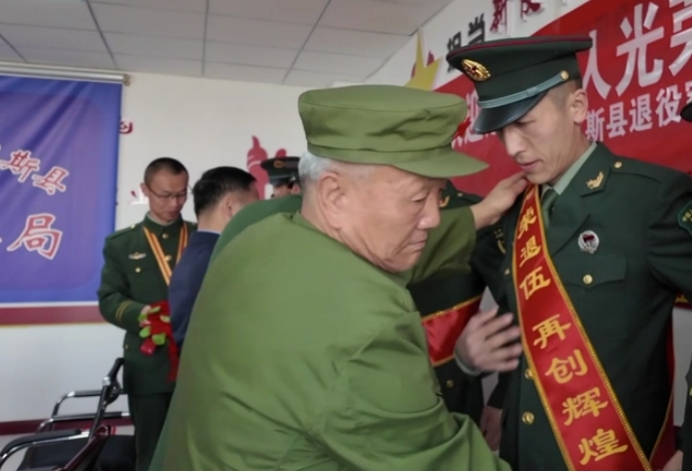 仪式现场,县退役军人事务局党组书记杜小江、“新疆最美退役军人”沈建佳及优秀退役军人代表,为返乡退役士兵一一佩戴红花与绶带,以最高礼遇致敬英雄。杜小江表示,退役军人是社会主义现代化建设的重要力量,县退役军人事务局将用心用情做好服务保障,当好大家的“娘家人”。