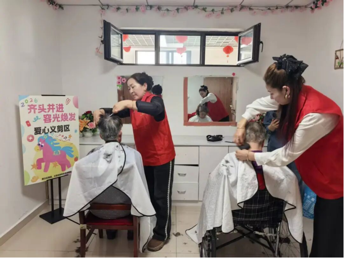 启动仪式结束后,分会场活动在特克斯县明奎养护院温情展开。卫生健康志愿者为养护院的老人们测量血压、答疑解惑;温暖人心志愿服务队的志愿者们开展义剪服务,并为3月过生日的5位老人精心准备了爱心生日会。