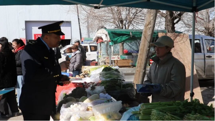 3月9日,特克斯县市场监督管理局组织执法人员对喀拉达拉农贸市场开展“全覆盖、无死角”市场监管检查行动,维护消费者合法权益。