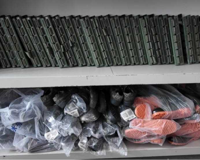 △储备充足的铅丝石笼网,铁锹等防汛抢险工具 张瑞 摄