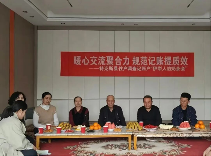 4月16日,特克斯县统计局在喀拉达拉镇库木托别村举办"暖心交流聚合力 规范记账提质效"主题活动,组织辖区记账户、统计员及村辅助调查员参与。其中,记账户是负责记录家庭日常收支的居民,统计员及村辅助调查员则负责指导记账户规范记账、收集整理记账数据,助力住户调查工作有序推进。活动以温馨交流形式,深化民族团结、提升记账工作质效。