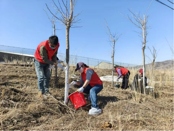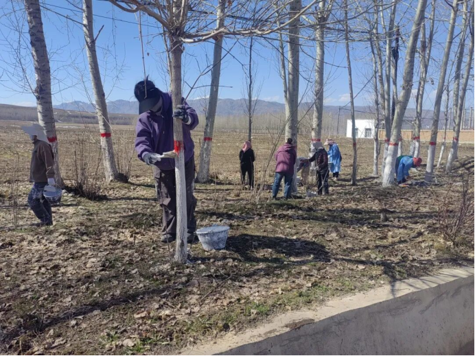 乔拉克铁热克镇孟布拉克村团支部组织团员志愿者开展春季树木涂白养护活动。志愿者们身着红马甲,为田间树木统一涂刷涂白剂,有效预防病虫害、防冻防裂,守护苗木健康生长。此次活动既美化了乡村环境,也以实际行动践行生态保护理念,为春日乡村增添一抹亮丽志愿红。