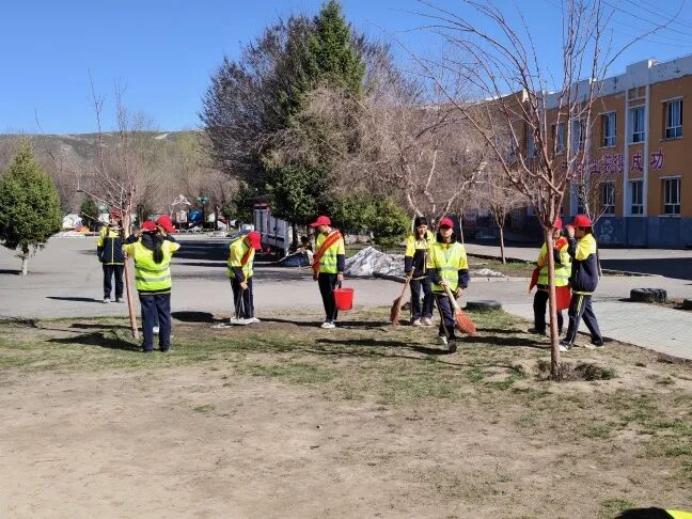 阔克铁热克乡初级中学团委组织团员开展校园环境整治活动。团员们分工协作,对教学楼、草坪及校园各个角落进行全面清扫,认真清理垃圾与杂物。大家以实际行动美化校园,增强了责任意识与集体荣誉感,营造出整洁文明的校园环境。