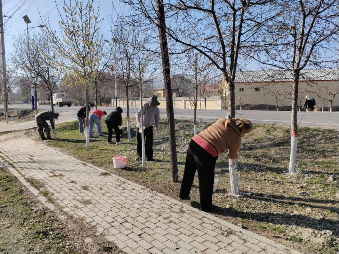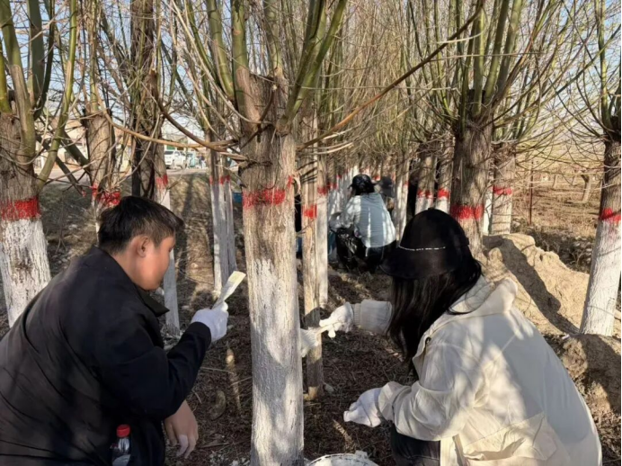 阔克铁热克柯尔克孜族乡团委开展环境整治及树木刷白护绿行动。青年团员们踊跃参与,挥铲刷白、精心养护,为树木穿上“防护新衣”,以实际行动美化乡村环境、守护绿色生态,切实扮靓乡村颜值,绘就生态宜居新画卷。