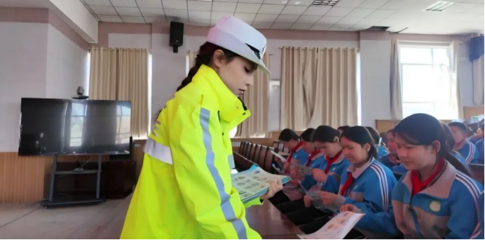 宣讲过程中,宣讲员与学生们积极互动、双向交流,充分调动学生参与积极性。活动尾声,交管大队工作人员向学生们发放交通安全宣传手册,学生们认真翻阅、主动学习,深入领会手册中的安全知识。整场宣讲氛围浓厚,学生们听得专注、记得扎实,切实体会到交通安全的重要性,引发热烈反响。