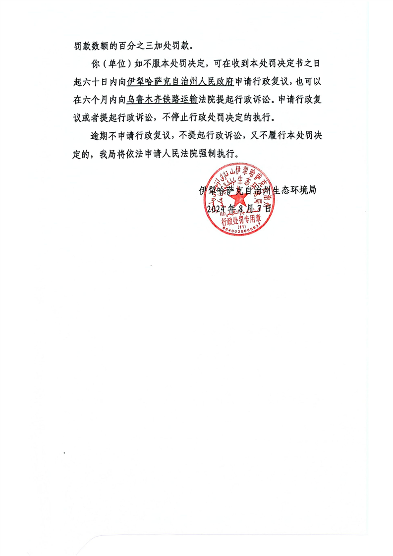 伊犁哈萨克自治州生态环境局行政处罚决定书(伊州环特罚〔2024〕1号)
