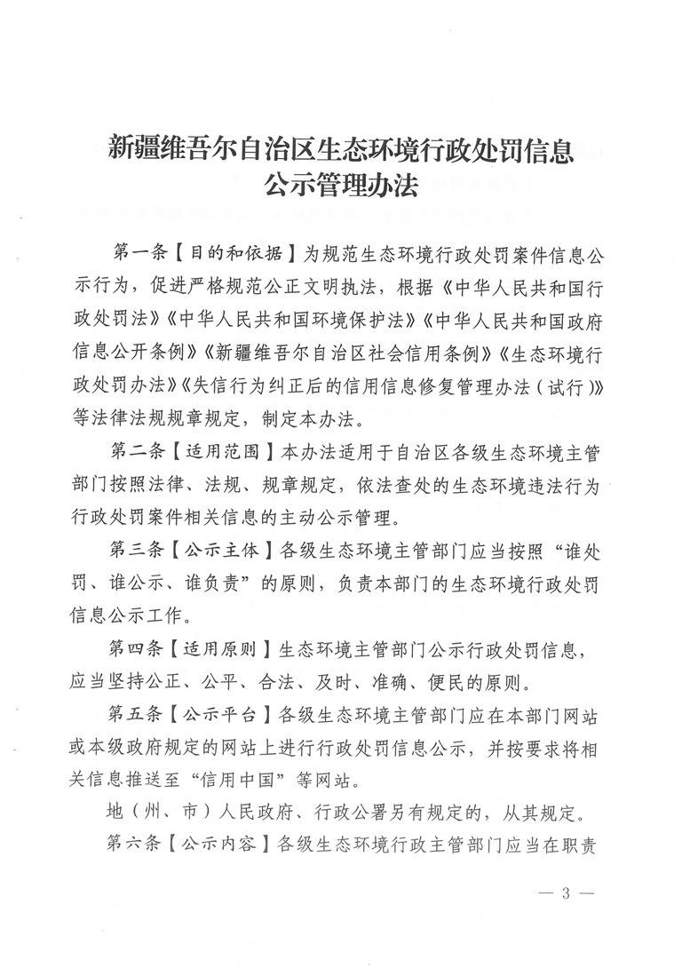 关于印发《新疆维吾尔自治区生态环境行政处罚信息公示管理办法》的通知