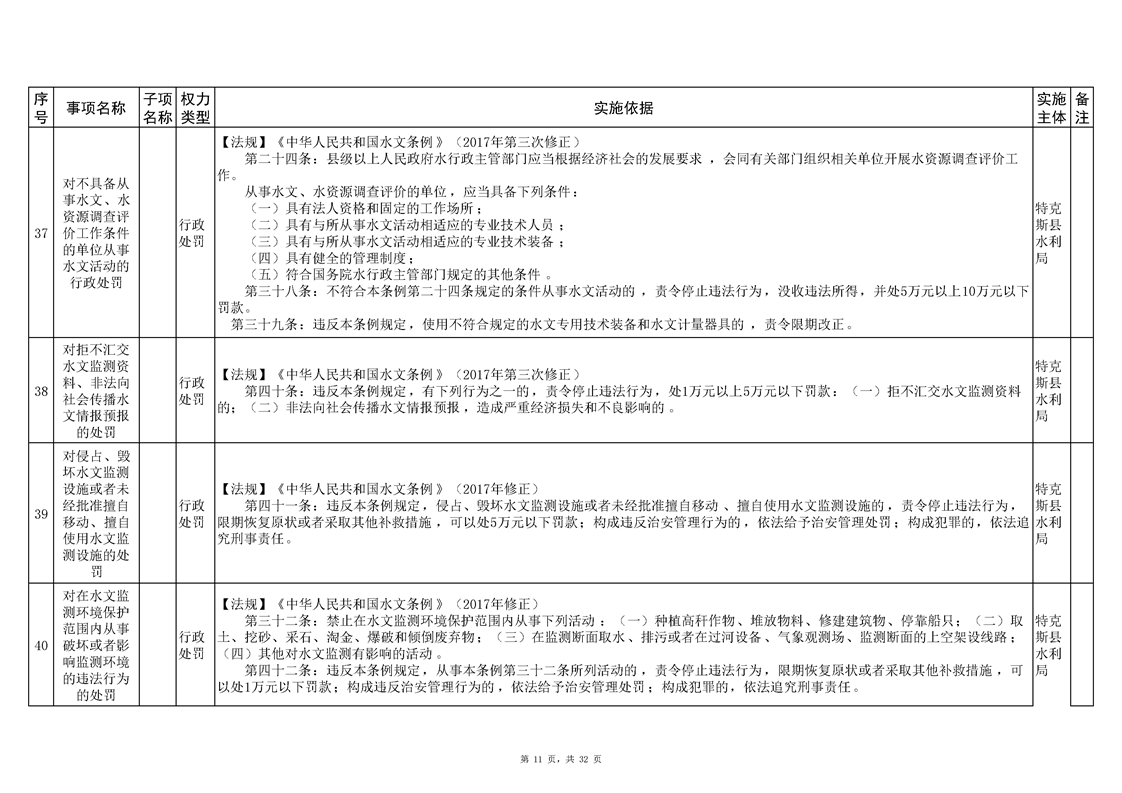 特克斯县水利局2024年行政执法事项清单