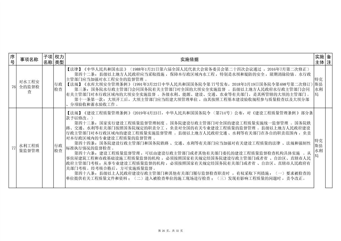 .特克斯县水利局2024年行政执法事项清单