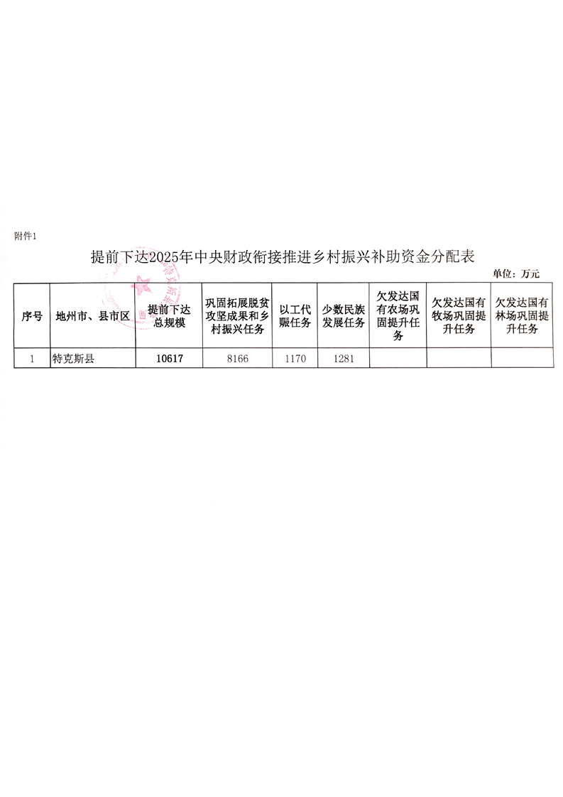 特财农[2024]26号:关于提前下达2025年中央财政衔接推进乡村振兴补助资金预算的通知10167万元