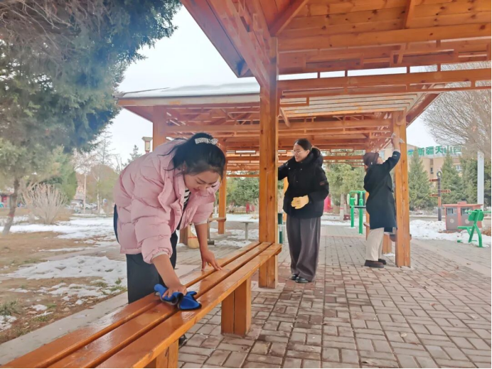 特克斯镇东城幸福社区组织党员干部群众开展环境卫生整治行动,协调扫雪车高效作业,全面清扫小区外围及主干道人行步道,累计清理道路3公里,为居民创造了整洁、安全的冬季出行环境。(县委组织部、老干部局、党校驻特克斯镇东城幸福社区工作队 奴尔孜亚·阿布都卡哈尔)