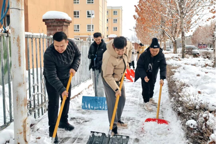 齐勒乌泽克镇阿克奇村组织党员干部成立志愿服务队,集中清理村内主干道、公共区域及坡道拐角等重点地段积雪。大家分工协作,干劲十足,既消除安全隐患,也以实际服务温暖民心,展现了党员干部的责任与担当。(县水利局驻齐勒乌泽克镇阿克奇村工作队 张萌)