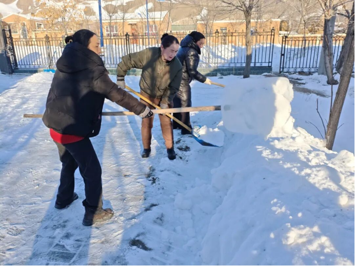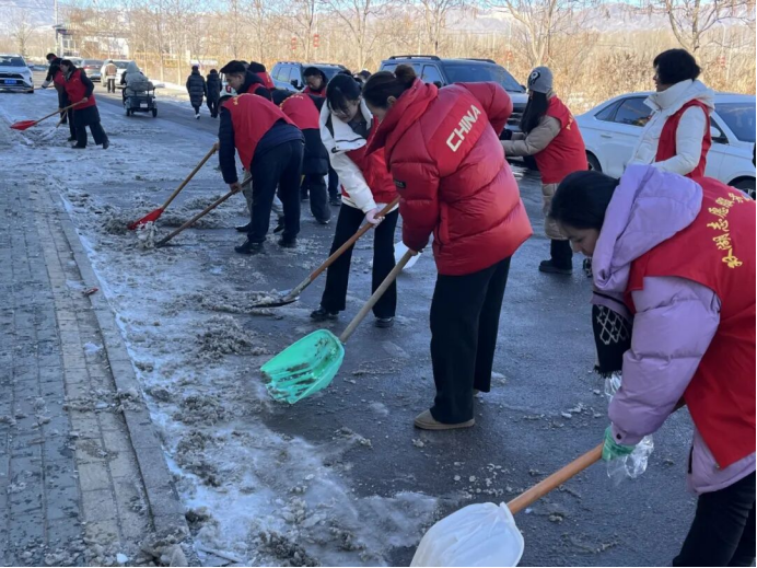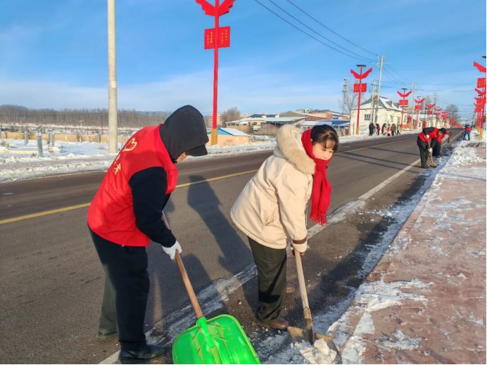 呼吉尔特蒙古族乡前进新村组织党员干部群众成立志愿服务队,集中清理主干道、坡弯路段积冰积雪,既保障了村民出行安全,又凝聚了党群共建美好家园的合力。(县农业农村局驻呼吉尔特蒙古族乡前进新村工作队 王万兴)