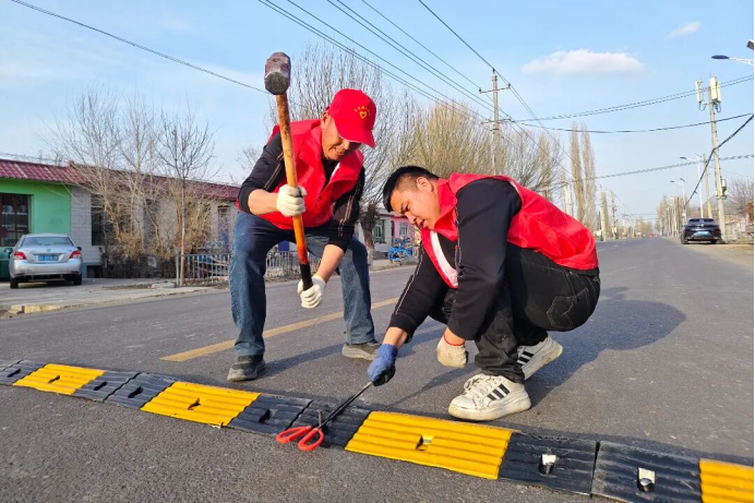 尼勒克县胡吉尔台乡玉什阔灭依村与县人大办公室驻村工作队,组织党员志愿者为村内道路安装减速带,消除交通安全隐患,完善基础设施。(尼勒克县胡吉尔台乡玉什阔灭依村党支部 马宝 供稿)