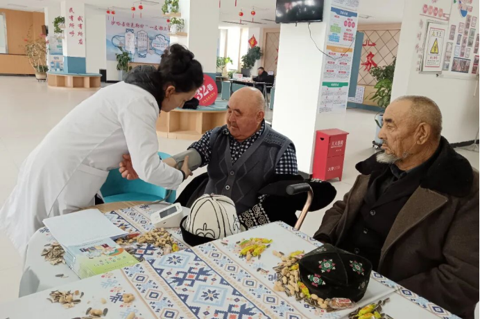 巩留县吉尔格郎乡阔格尔森村联合巩留县总医院第二分院开展暖心义诊活动,为群众测量血压、血糖,普及慢性病防治常识,提供疾病问诊、用药指导服务,为基层群众健康保驾护航。(巩留县吉尔格郎乡阔格尔森村党支部 杨肖冬 供稿)